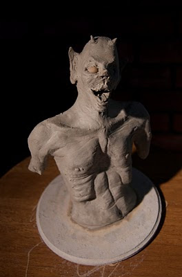 We tried something new in sculpture class this week and made sculptures using Wed Clay. Wed clay was the stuff i used when i was in elementary and middle school and so it was very cool to go back to it. The Last stuff i remember sculpting with it was a ceramic pot and some pieces for the nativity scene at my house. Wed clay is usually finished by putting it in a kiln but can also air dry so you need to get out your idea pretty fast. We did these sculptures in one class session and it was really fun. The clay was great to work with and really allowed us to get organic forms. I'm really happy with the way the anatomy turned out! And my mom (a prof in anatomy at UNM) thought it was really good too, but she also now thinks i'm possessed by a demon myself, because of the character i made. Come on mom it's just a sculpture!